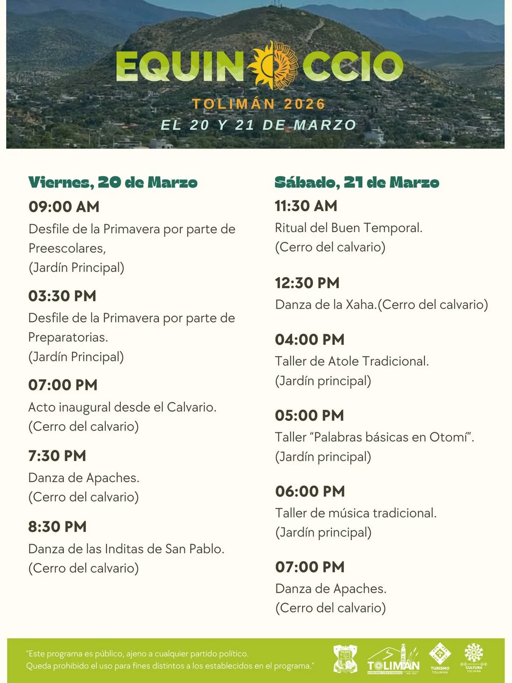 El gobierno Municipal de Tolimán invita a la ciudadanía y visitantes a ser parte de Equinoccio Tolimán 2026, una celebración que honra nuestras tradiciones, cultura y conexión con la naturaleza.